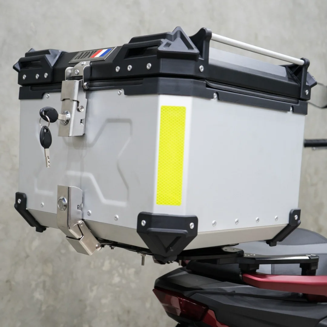 Look for features like locking mechanisms, waterproof seals, and possibly the ability to add a backrest for a passenger.