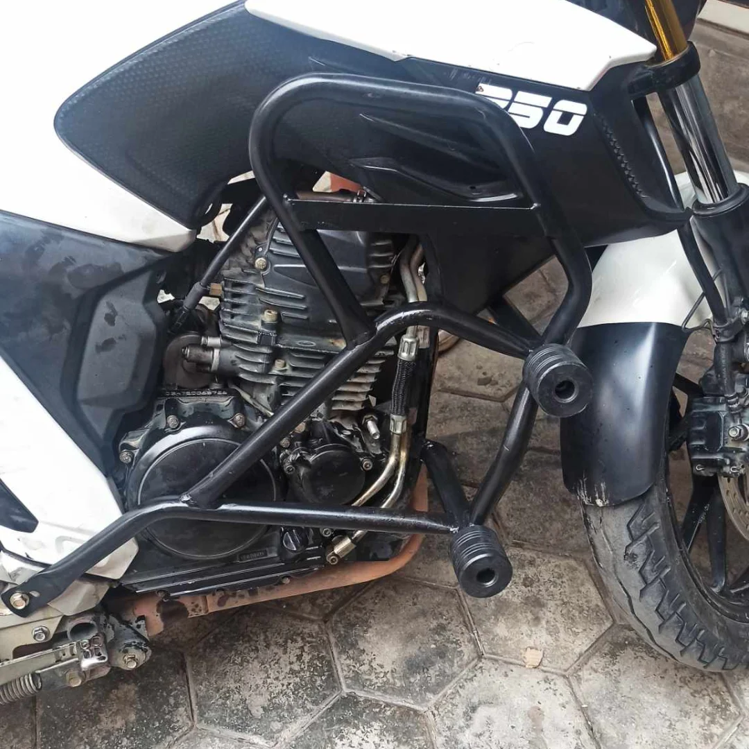 Crash guard is a protective accessory designed to shield the bike's engine and frame in the event of a fall or low-speed collision.