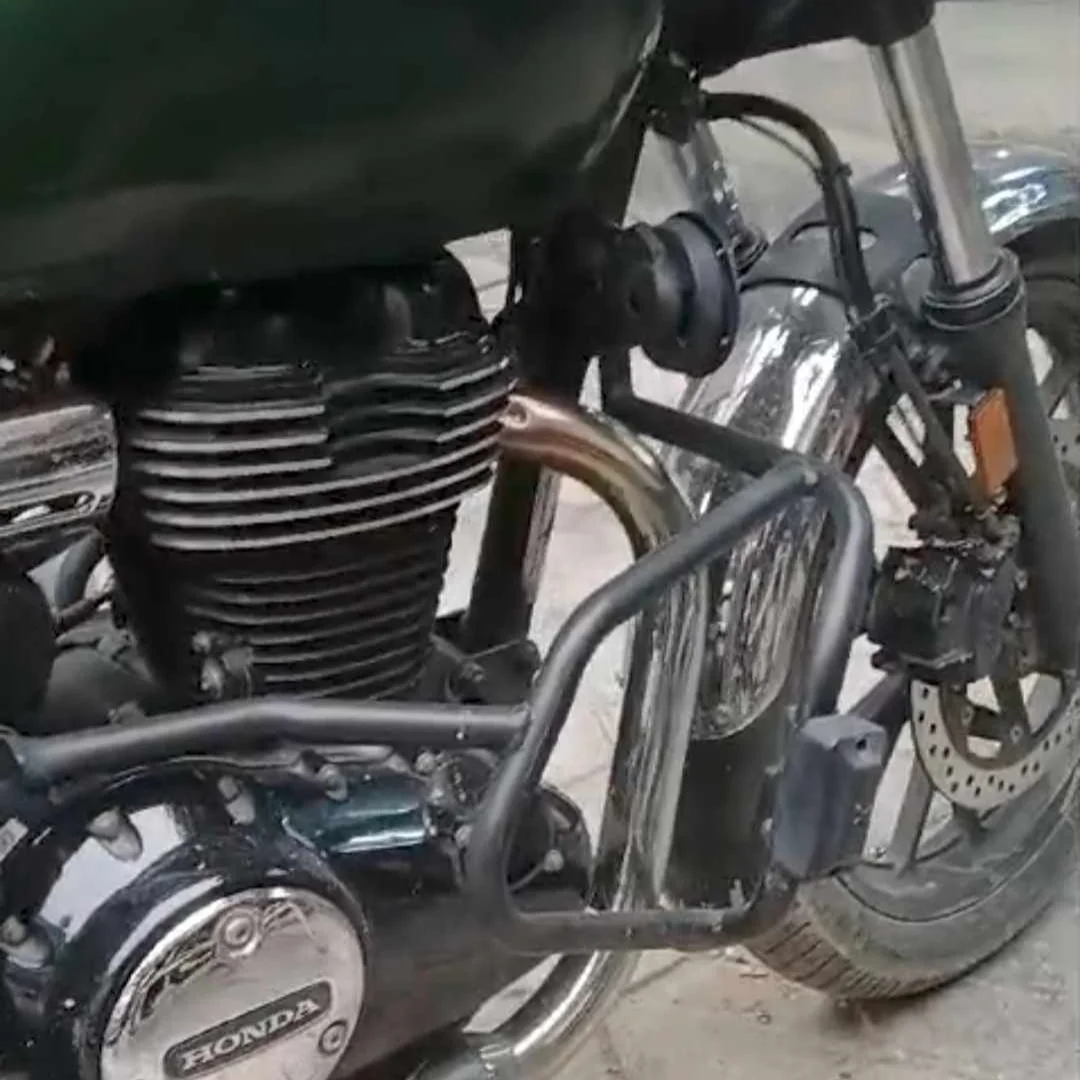 Crash guard is a protective accessory designed to shield the bike's engine and frame in the event of a fall or low-speed collision.