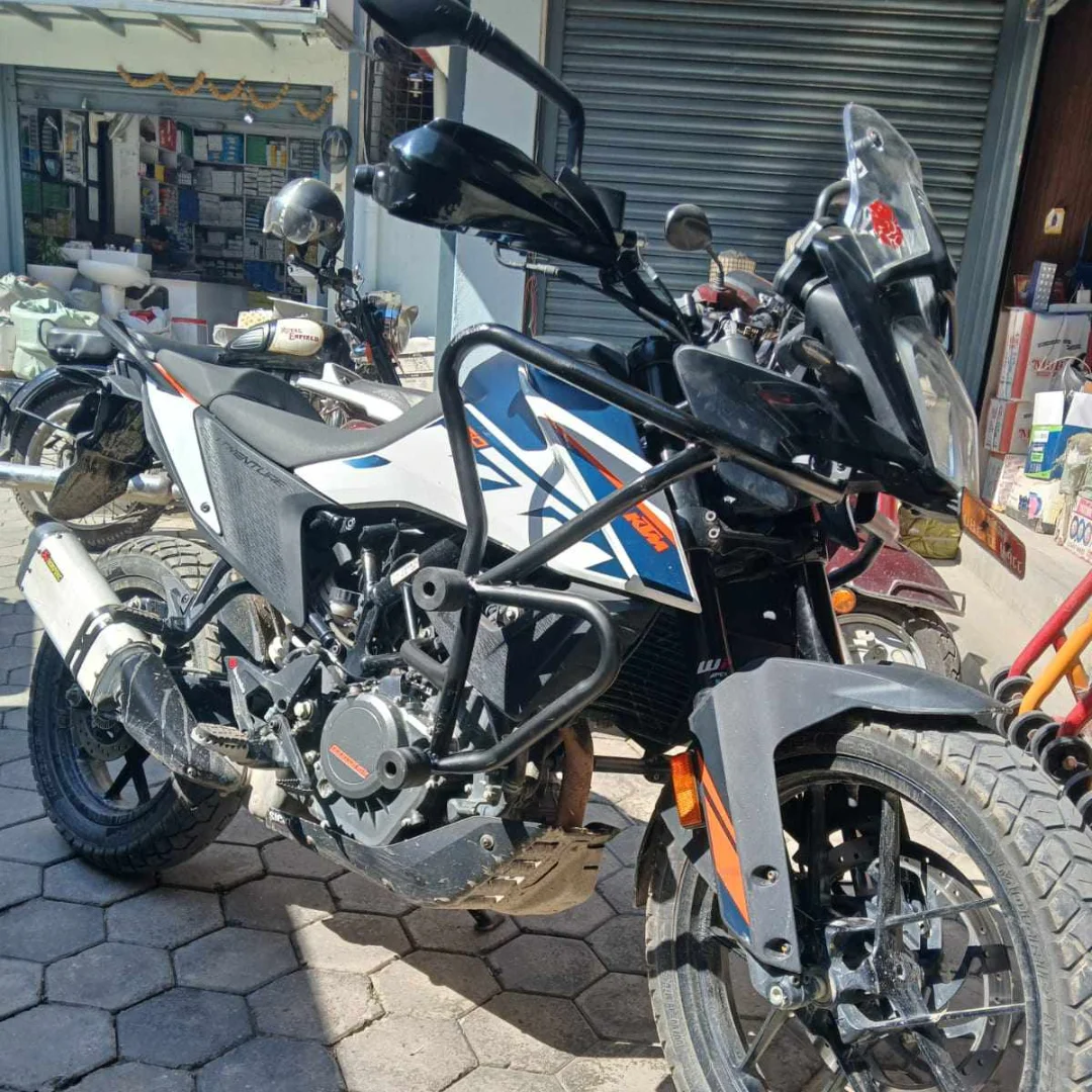 Crash guard is a protective accessory designed to shield the bike's engine and frame in the event of a fall or low-speed collision.