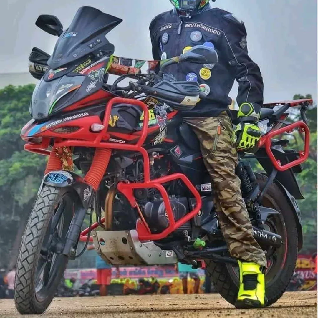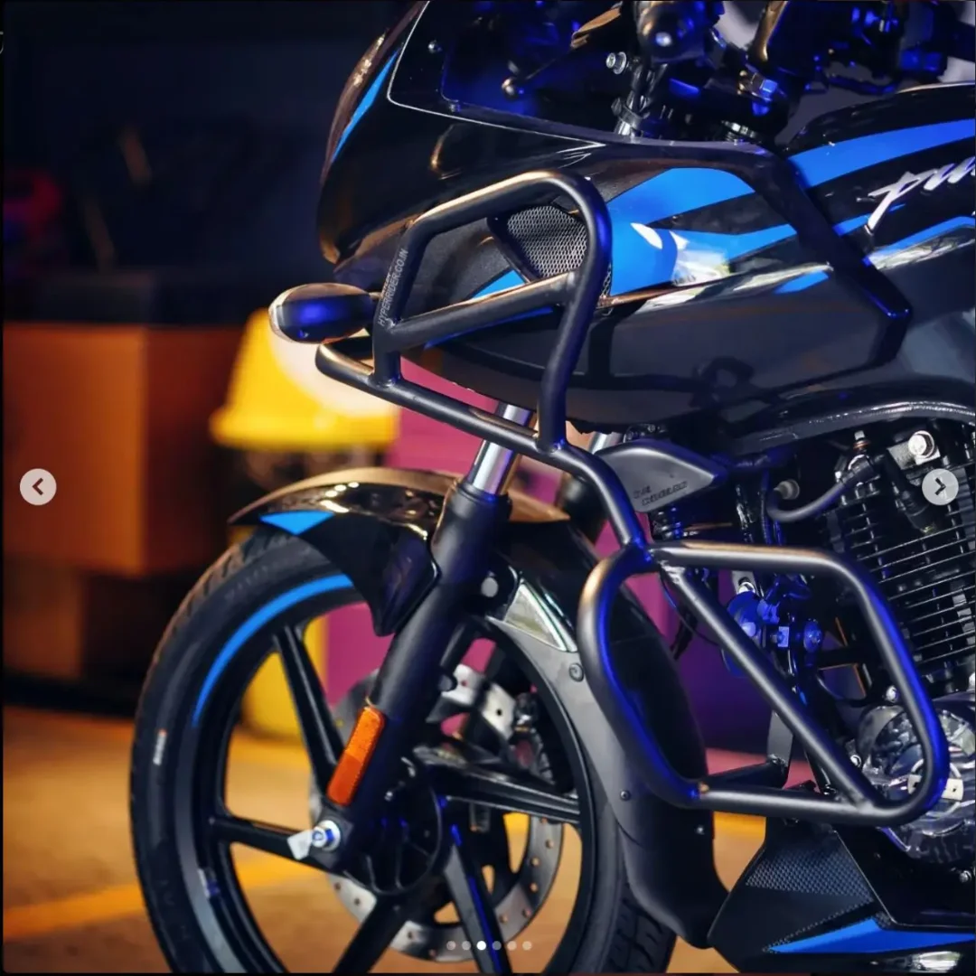 Crash guard is a protective accessory designed to shield the bike's engine and frame in the event of a fall or low-speed collision.