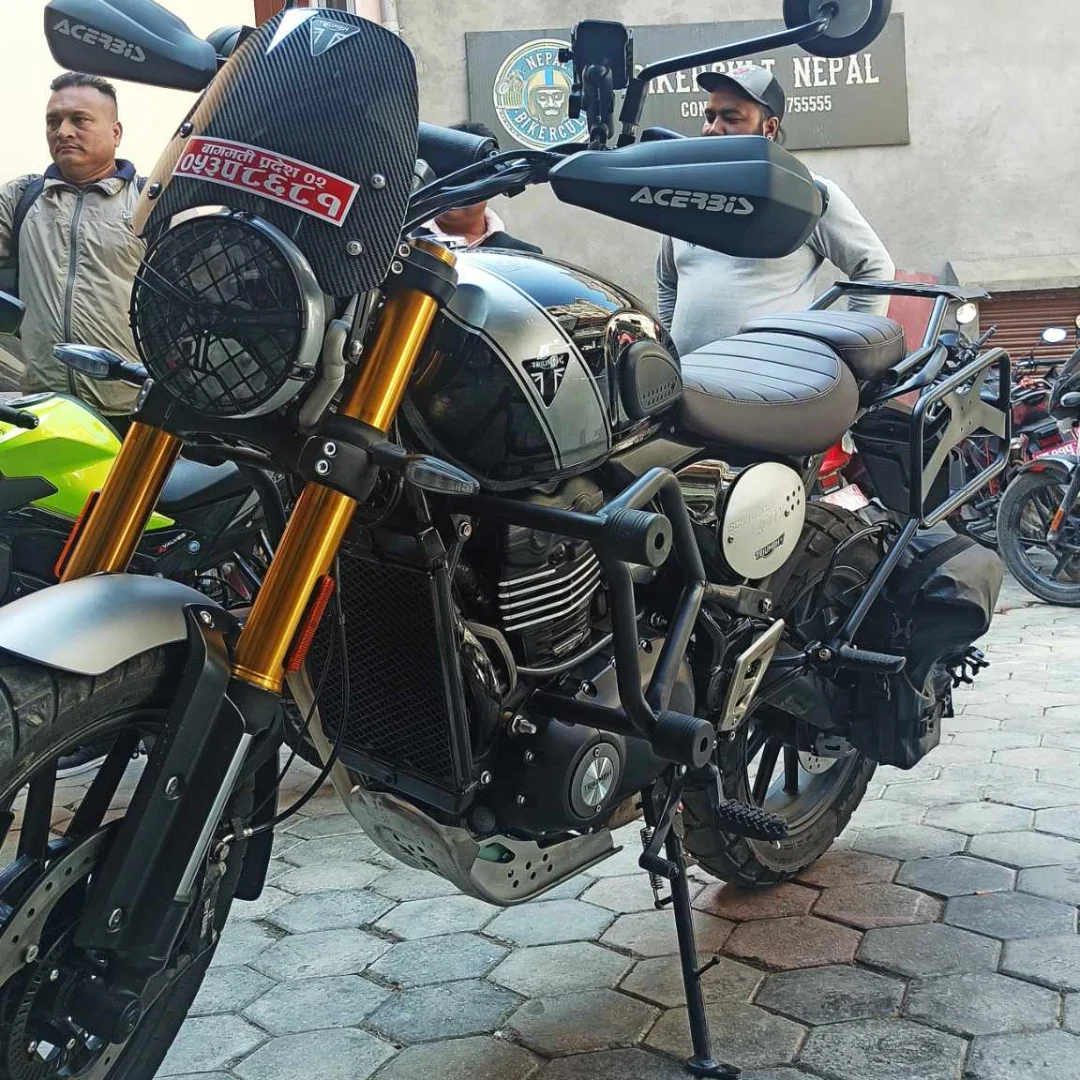 Crash guard is a protective accessory designed to shield the bike's engine and frame in the event of a fall or low-speed collision.