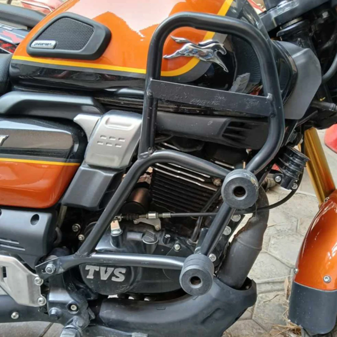 Crash guard is a protective accessory designed to shield the bike's engine and frame in the event of a fall or low-speed collision.